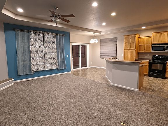 Welcome to this pristine ranch-style home with a large backyard with amazing views. With five bedrooms and three full baths, this home provides ample space for your family's needs and space for entertaining. There are three bedrooms and two baths on the main level, as well as a finished basement consisting of two bedrooms, another full bath, large family room, and playroom. Whether you are relaxing in the living room or entertaining in the open-concept kitchen and dining area or 600 sq-ft deck, the panoramic view will surely enhance your day-to-day living. Situated on a lot that backs up to open space, this property offers a serene and private setting. Located in the highly sought-after Pointe subdivision this home resides in a quiet, family friendly neighborhood. Central air-conditioning. Lawn sprinkler system with drip irrigated raised garden beds and garden shed. Solar panels and electric heat pump and AC significantly reduce utility bills. Two car garage fits most pickup trucks. Main floor laundry, washer and dryer can be included. 5 piece master bath with walk-in closet. Leasee pays city water / trash, gas and electric, and internet / TV (if desired). Small pets (up to 40 lbs) allowed (up to two). Pet fee: $350 non-refundable. No aggressive breads. No smoking. Leasee to maintain lawn and snow removal. Must abide by HOA rules. Minimum credit score: 700