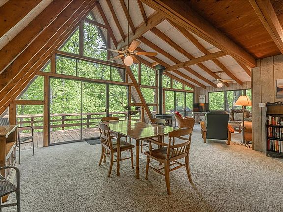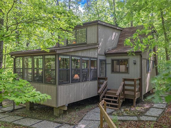 Escape to Innsbrook, where tranquility awaits amidst the rush of everyday life. Picture yourself under the starlit sky, bonding with loved ones as you roast s'mores around the firepit. Inside, the spacious sunlit living room invites warm togetherness, offering panoramic views through floor-to-ceiling windows. Indulge in a captivating book while the wood-burning stove fills the air with comforting crackles. Gather around the generous dining table for family meals or retreat to the enclosed sun porch for lively card games. With two expansive bedrooms and an oversized sleeping loft, there's ample room for everyone to unwind in comfort. Sip wine from the oversized deck, basking in the beauty of nature and observing the local wildlife. Feel the thrill of adventure as you kayaks from the nearby community beach. This property can be rented if desired. A large shed provides storage for golf clubs or lake essentials. Fully furnished and brimming with potential for endless enjoyment.
