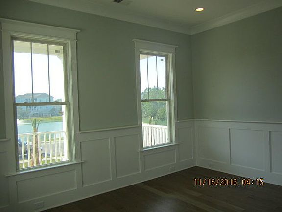 Marshfront, raised with 3 car garage, Cement Plank siding, 10 ft ceilings on first level, 9 on second, Custom kitchen cabinets with Granite counter tops, tile back splash, stainless steel appliances, 5'' white oak floors in the whole house except baths have tile. Master bedroom on first level of living space. Walk in shower in master bath, Granite counter tops in master bath, Rinnai tankless water heater, spray foam insulation, metal roof. Professionally landscaped yard, sodded and irrigation front, back and sides. Construction completed.