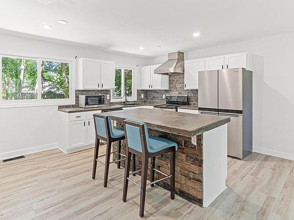 Welcome to this beautifully updated home just a block from Chisago Lake! Enjoy a brand-new kitchen featuring sleek stainless steel appliances, a large kitchen island and modern finishes. The stylish LVP flooring throughout the main level adds durability and elegance. 2 good size bedrooms upstairs and full bath finish off the main level. Lower level features a large family/amusement room, additional bedroom and an updated 3/4 bath. Relax in your private yard, perfect for entertaining or unwinding after a day on the lake. With a new furnace, AC, and water heater installed in 2016, this home is move-in ready and offers peace of mind. Don't miss out on this perfect blend of comfort and convenience. Ready to move right in and enjoy!