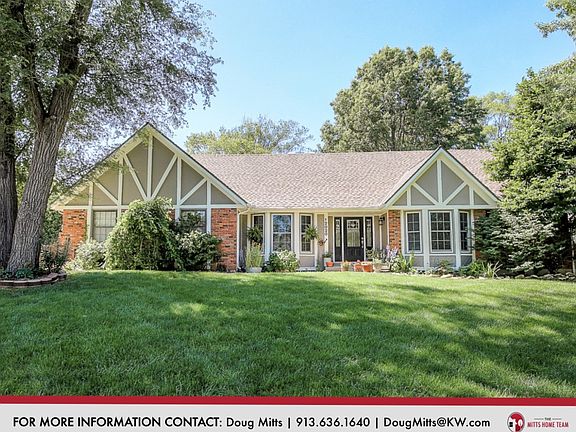 DOUG MITTS THE MITTS HOME TEAM - KELLER WILLIAMS REALTY PARTNERS - 913.636.1640 - DougMitts@kw.com - www.TheMittsHomeTeam.com - This wonderful Leawood 1.5 story lives like a ranch, has wonderful curb appeal and is now priced well below the competition and neighborhood! Gorgeous hardwood floors have recently been installed throughout the main level, there is an abundance of comfortable natural light, the floor plan is timeless, and the large office with French Doors is perfect for anyone working from home! Beautiful great room with soaring ceiling, large finished lower level PLUS newer roof, windows, HVAC, updated kitchen cabinets and new carpet! The patio has been expanded, the driveway partially replaced, the fenced back yard is a small paradise, and feel safe during storms with the lightning rods! WONDERFUL SCHOOLS, INCREDIBLY CONVENIENT LOCATION, BEAUTIFUL NEIGHBORHOOD AND FANTASTIC FLOOR PLAN - IT'S ALL HERE!