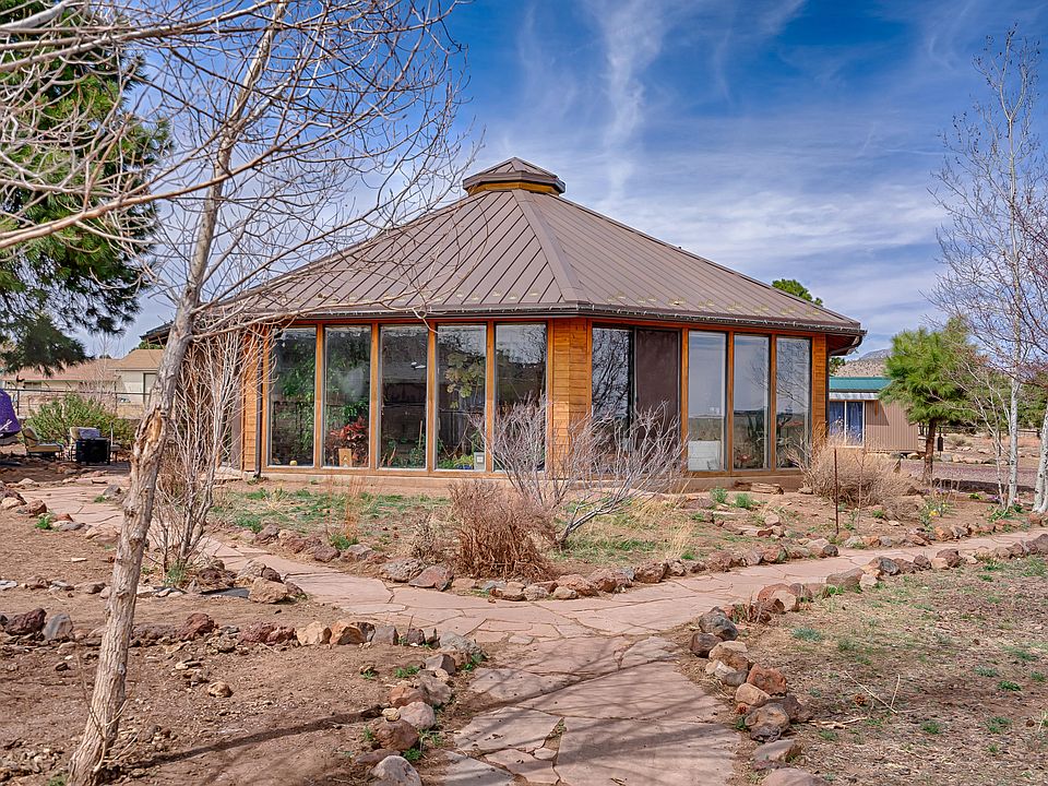 A BEAUTIFUL HOME THAT PAYS FOR ITSELF. This 2 acre property features a stunning custom home with 1 bedroom, 2 bathrooms, designed by local architect Ed Dunn. The award winning design integrates passive solar and sustainable materials with lots of natural light and incredible views of the mountains. The refreshingly open floor plan includes a large self-watering indoor garden and vaulted ceilings. The property also includes an A-Frame cabin with 2 bedrooms and 2 bathrooms. As a short term rental for the past 4 years; the cabin has paid the mortgage for the entire property and more, but could also be used for a multigenerational approach. Property is fenced for horses and includes a 2 stall steel run-in shed. US Forest Service trails are within easy access. NO HOA or CCR'S !