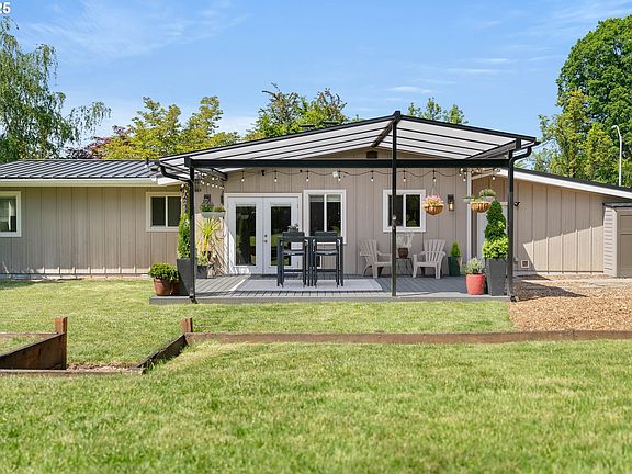 Welcome to the home you have been waiting for. Situated in the core of Cedar Hills at 12020 Sw Park Way you will find single level living on nearly a ¼ acre. Distinguished by its iconic slanted metal roof and double-sided brick fireplace, the homes timeless Mid-Century sophistication is apparent. The smart floorplan flows from living spaces seamlessly with refinished oak hardwood floors. The dining rooms French doors can be opened to a premium Trex deck and a Acralight sun-filtering awning—ideal for entertaining. The expansive backyard truly is a sanctuary and offers soccer field like space to play and garden. Sizable enough for a future island, the kitchen has stainless steel appliances, granite counters, recessed lighting and wood cabinetry. Fireside dining is possible due to the second fireplace. The 3 bedrooms also offer refinished oak hardwood floors and dual pane windows. Privately situated on the back of the home the primary suite has a thoughtfully remodeled ensuite bathroom. Architectural charm with the modern luxuries of electric car chargers (both Tesla and Charge Point). This neighborhood encourages an active lifestyle with access to Commonwealth, Foothill, and Cedar Hills Parks—and just moments from the dining and shopping of Cedar Hills Crossing—here classic style is paired with everyday convenience.
