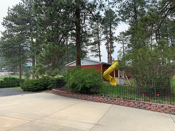 All brick home with 360 degree views surrounded by Black Hills National Forest, 3 out-buildings with shop, 7 garage bays, RV pad, creek-fed irrigation, newly renovated main-floor living.