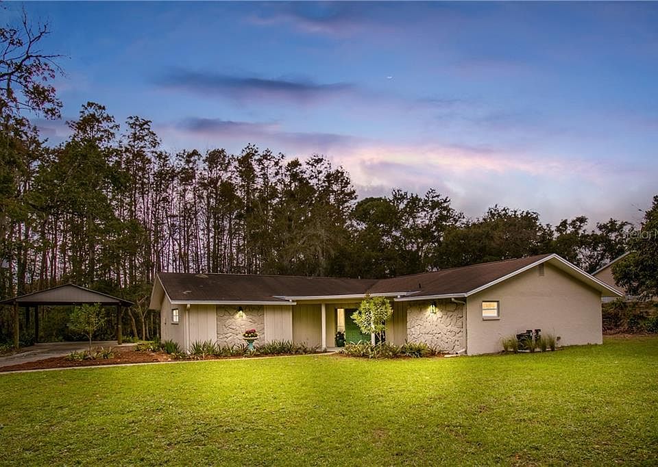 One or more photo(s) has been virtually staged. Amazing Totally remodeled pool home on over an acre of land. New spectacular Kitchen with level 4 Granite and tons on counter space and New stainless steel appliances. New energy efficient windows throughout! There is a huge pool with New Quartz finish and New screens. There is a workshop with carports that could easily be converted to a barn for farm animals. The workshop has a separate electric meter. The home has a split floor plan with both bathrooms completely remodeled. There is a huge screen room overlooking the pool area with tons of shade and privacy. The floors are all New LVT and New Carpet in the bedrooms. Den could possibly be a 4th bedroom. There is a New water treatment system, New pressure tank, and New water heater!! This is a really unique home you must see!! Bring the farm animals because they will have plenty of places to roam. Close to shopping and 52. Call for more info.