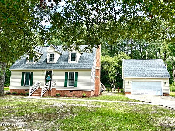 Beautiful, spacious Cape style home. Great floor plan with spacious main bedroom on first floor with full bath. Two additional large bedrooms upstairs with a guest bath featuring separate vanities. Enjoy the open LR, DR and kitchen on main floor as well as a study/office. Home has beautiful hardwood floors, tile and carpet. Updated kitchen with granite counters and a fireplace in the living room. Walk out back onto a large wood deck or sit and relax overlooking a large back yard. Detached 2 car garage also has pull downstairs for additional storage. Looking for a move in ready home with updated kitchen and appliances, then this is it!!! Great location close to shopping, hospital and schools. Call today to see this amazing home.
