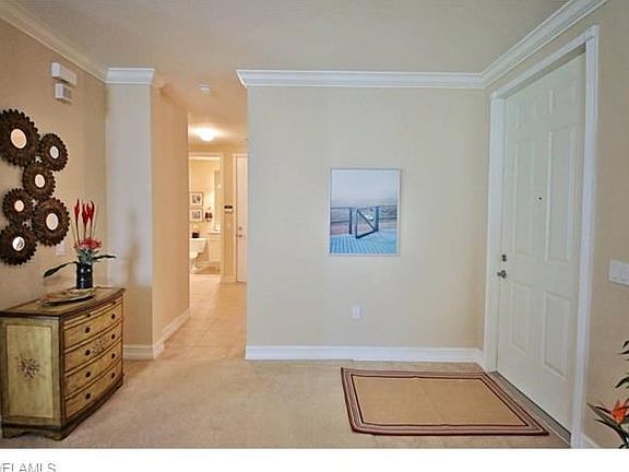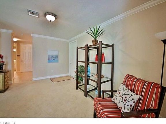 Portofino Luxury Coach Home. "Tuscan inspired" Lovely ground floor, 2 bedroom, 2 bath, home features an open floor plan with spacious living and dining areas. Beautiful open kitchen with 42" cabinets, granite countertops, newer appliances, island and adjacent sunny eat in breakfast area. Master suite features a large walk in closet, master bath area with dual sinks and large shower. Triple sliders to screened lanai overlooking lush landscaping is perfect place to relax and enjoy the Florida lifestyle. Gated community offering residents a large resort style heated pool and spa, fitness room, and clubhouse. Great location across from Six Mile Cypress Preserve and close to shopping, airport, and restaurants.