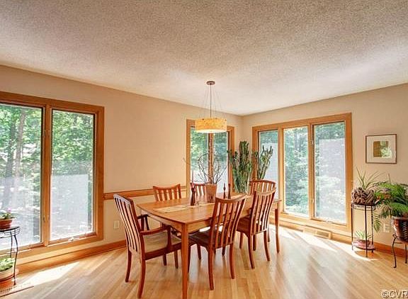Situated in one of the most sought after areas of Midlothian, this home is nestled on over an acre of hardwood forest. The home features a 1st floor master suite that opens onto the 34' long private deck. The kitchen and baths were recently updated with a rich warm granite. The open living, dining and kitchen have gorgeous hardwood floors and the focal point is a large stone gas fireplace with raised hearth. Upstairs there are 3 additional bedrooms, one currently purposed as a large family room. The basement level with a one-car garage, also has a laundry area, workshop area and a carpeted recreation area, with a full shower bath + a wet bar. Home has been equipped with easy to connect gas generator. Enjoy the sun or shade on the front or rear decks. Foundry Run, off Old Gun Road, is served by Robious Elementary and Middle School, and James River High School.