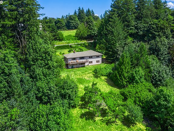 Escape the city while only minutes away from Portland/Hillsboro! This 8.6 acre property has cleared trails in the surrounding forest - your own private park! Wear good shoes to see! With thriving fruit trees, grapes & garden spaces, this property is the perfect sanctuary. The house has a great layout and only needs your updates. The daylight basement is perfect for a separate living space, AirBnB, studio/office or 4th bedroom. Sunset views over coastal range from the deck are inspirational.