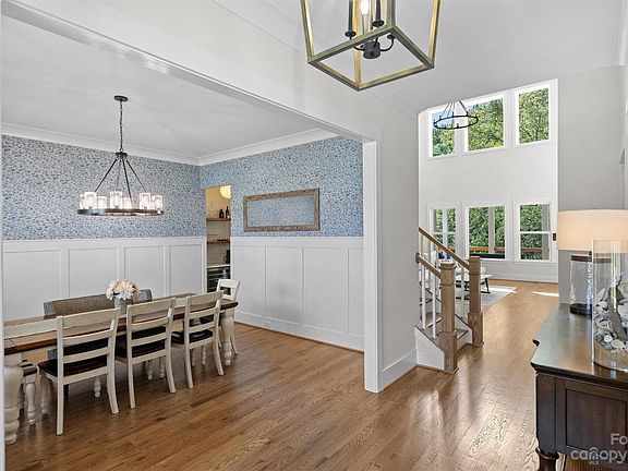 Modern farmhouse exemplified with picture windows and details around every corner. A noticeable theme of larger rooms and wide hallways as part of the thoughtful layout design. Moldings, wainscoting, exposed beams, and ship lap details are examples of the detailed finishes. Main floor primary master suite extends to oversized master bath with stand alone tub and walk in closet. Large guest room on main floor with attached en suite on opposite side of primary bedroom. Updated matching Kitchen Aid appliances, gas cooktop, two tone large eat in island, overlooking the two story great room with extended picture windows. Ample storage between the three car garage and massive walk in attic space. Both guest bedrooms on second level have attached en suite full bathrooms. Covered deck overlooks private backyard with HOA owned land behind the property line. Blackwood Knoll is conveniently located in Huntersville minutes from Hwy 73, Birkdale Village, Davidson, and more.