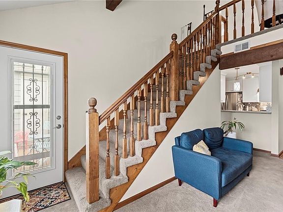 Welcome to this fantastic condo in a great location in Shawnee! You'll love the updated kitchen with lots of counter and cabinet space and a dedicated dining area. The vaulted ceiling gives a nice open feel to the living room. The main level also has the primary bedroom, which features vaulted ceilings, an attached bathroom, a walk-in closet, and a custom drawn and painted mural by a local artist! You can walk out onto the attached deck/balcony from the primary bedroom or the living room. The upstairs loft area can serve as a second bedroom or living space, and has its own large full bathroom and spacious closet. The AC unit is just a year old, and the HOA covers all exterior maintenance including the attached deck and the roof. HOA also includes water and trash! This unit also comes with a dedicated covered parking spot, and access to additional 5x8 dedicated storage space in the building's basement. The condo complex has a great in-ground pool for your summer enjoyment! All that and it's located less than a mile from downtown Shawnee!