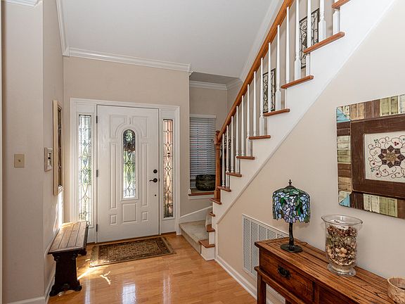 Well-maintained, immaculate all brick home in a wonderful family-friendly sought after neighborhood. Beautiful hardwood floors in main living area. Enjoy the nine-foot ceilings on main level with crown molding. Soaring vaulted Great Room with cat-walk looking down from upstairs and gas fireplace. Kitchen includes stainless appliances, breakfast bar, desk, and solid granite counter tops. Main level master suite with has his/her large walk-in closets, a garden tub & tiled shower. The well appointed Master bath was remodeled in 2016. So much space to grill and entertain on the large back deck. The huge backyard is private and has a wood fence. Plenty of garage and working space with the three-car garage/workshop.