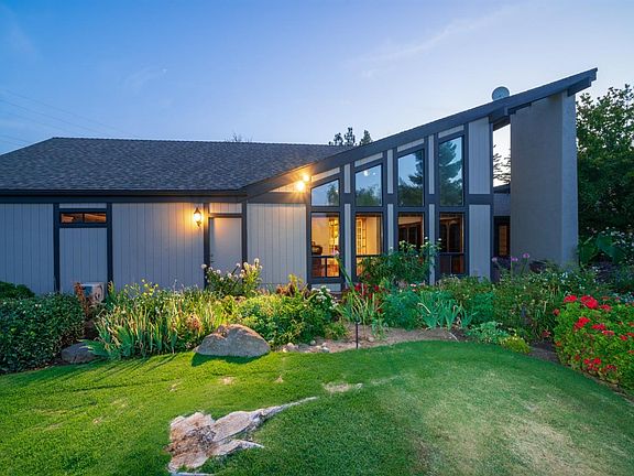 Great location! Mid-Century modern 4 BR-3BA home on 2.3 acres in the Copper River expansion area, just 5 minutes from Clovis North HS or River Parkway. Surrounded by much more expensive homes. Attached 3-car garage, plus there is a 28 X 32 detached garage/workshop (900+ sq ft) with a refrigerated wine room and space for 5 cars, boat or tractor and equipment. RV-parking, dog run, large garden and family orchard with a variety of fruit trees. Kitchen completely remodeled in 2007 with new cabinets, granite counters, SS appliances, built-in refrigerator, Bosch dishwasher and double ovens, gas range,butcher-block island, two sinks, full-wall bookcase, laminate floors. Living room, family room, game room. Fenced pool and spa. Inside laundry plus hook-ups and sink in garage. Set up on a hill with a pasture in front where you can board your own horses. Country living but close to everything!