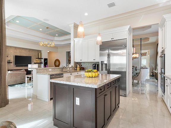 Prime lake view with exotic landscaping in the Capri section of Valencia Cove includes 3 Bedrooms + large Office/Club Room and 3.5 bathrooms. This Carlyle Model was professionally decorated using only the finest products. Over $300,000 in upgrades (including lot premium). Not a dime spared on upgrades including impact glass windows and doors, 20x20 rectified porcelain tile, DCOTA carpets high-end fixtures and much more. HOA Fee includes lawn care, alarm monitoring, cable and internet. Please call for full list of upgrades.