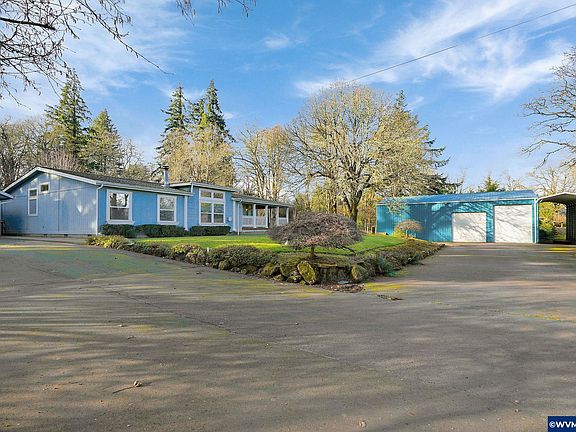 Beautifully landscaped property has easy access to I-5 without the traffic noise. Spacious house plus out building with multiple bays for RV/ toy storage, 240 outlet in outer bay, shop area with mezzanine. There are also a detached 2 car garage a garden shed. Plumbing and electric in place for hot tub at back deck. On a clear day you can see Mt Jefferson from your covered front porch. This is a MUST VISIT property. Start the process now to make this your new home.