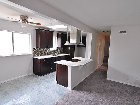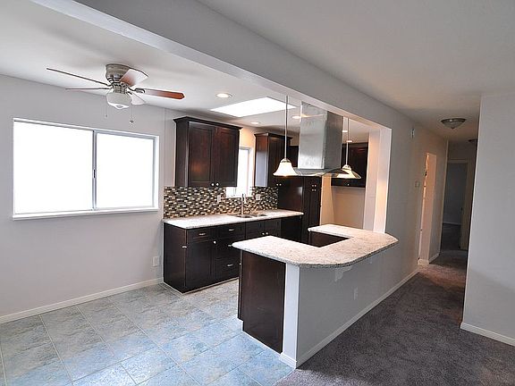 Welcome to your new home. As you walk up to the entry door, you can see the new exterior paint and green vegetation. Through the front door, you are greeted with new carpet and new paint throughout. The living room is an open space and leads directly into the kitchen. The kitchen is perfect for entertaining and has quartz counter tops, stainless steel fixtures, recessed lighting, tile floors and new cabinets. The glass back splash gives a perfect pop of color. Just off the kitchen is the dining area with large window and ceiling fan. Through the kitchen you will find the laundry room with access to the exterior of the house. Across the hall, you will find the hall bathroom with matching quartz counter tops, new fixtures and cabinetry. The file floors match the tile shower with decorative glass tiles that accent the shower perfectly. Down the hall you will find the 2 bedrooms, side by side. New carpet, new paint, sliding closet doors and large windows give this room great space. The hall has a closet perfect for linens and extra storage. This house is ready to be called home.