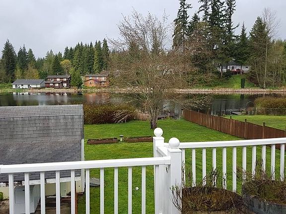 Lakefront home w/ private dock & huge backyard! 4 bdrm/2.75 bath shy 1,800 sf home offers wonderful western views over the lake. Full length Trex deck w/ 60' electric awning off deck w/ remote. Great for entertaining! 3 bdrms, including master bed & bath, upstairs & one bedroom/den/office lower level.The kitchen w/ double oven,granite tile counters & oak cabinets opens into living room w/ vaulted ceilings, ceiling fan & 3 heat pumps.Who doesnt love A/C?! Waterfront at it's best! And River access