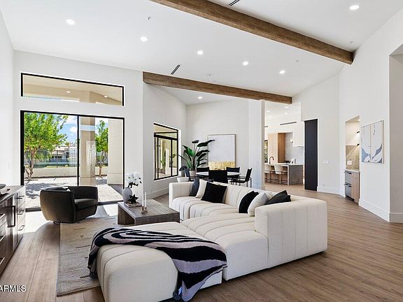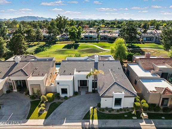 This perfect turnkey Designer Dream home is ready for its new Buyer! Tucked away in the secure Guard-gated Scottsdale Country Club, come watch stunning sunsets from your patio over hole #3 of Starfire Golf Course. Centrally located in the 3's; Cochise/Cocopah/Chaparral, this golf course home offers 2825 sq feet. A luxury Smart home with a 3 bed 2.5 bath split floor plan, featuring open living areas, soaring ceilings and impeccable attention to materials and finishes. Embodying true indoor/outdoor living: flowing from the gourmet kitchen into formal dining & custom bar, to living room onto the covered extended patio; entertaining with an afternoon BBQ. The impressive kitchen boasts an oversized Italian marble island, custom oak cabinets, & paneled Thermador appliances. Having two gorgeous en-suites, the oversized Primary is sure to impress! With decorative custom lighting and golf course views from the bedroom, the stunning marble bathroom feat. double vanities, an oversized dual shower and separate soaking tub; custom closet.