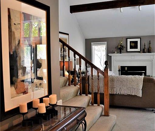 Updated & fresh 1.5 story in Stonehaven! Tired of mowing? Tired of shoveling snow? Want to come home everyday & enjoy your home? Then come see this beauty! Kitchen has been updated w/quartz counters, backsplash & tile flr. You'll find the lndry & mstr on the main level w/an updated bath + a bdrm & full bath upstairs, along w/a loft area for fun/business. Even the bsmt is finished but still has plenty of storage & cedar closet! Relax in front of the fp or step out on the deck under the trees & enjoy the shade!