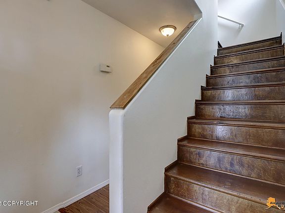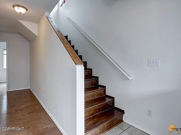 Location, Location 3BD 2BA condo is conveniently located in south Anchorage near schools, shopping and commuting. Ready to go with recent painting, laminate floors, fireplace, SS appliances, wash/dryer. Master bedroom top floor. BDS 2 & 3 down divided by Jack and Jill bath. Evening western sun. Dues covers snow road removal and common areas. Visitor parking end of street. Low dues! BTV all.