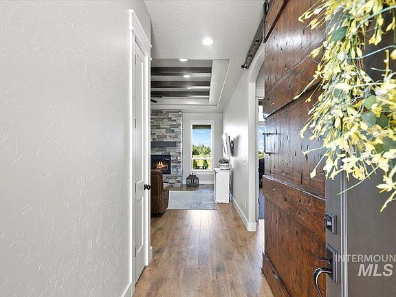 $30K Price Improvement! Beautiful like-new single-level home mixes modern living with a country lifestyle. Situated on almost a 1/4 acre corner lot next to a common area & backed up to a creek w/ no direct backyard neighbors! Stunning 11' beamed coffered ceiling & a floor-to-ceiling stone fireplace highlight the great room. Beautiful upgraded kitchen w/ granite countertops w/full tile backsplash, SS Appliances, large island complimented by double ovens, huge walk-in pantry w/appliance shelving & custom cabinetry. Owner's suite comes w/ coffered ceiling, recessed lighting & ceiling fan. On-suite bath is accented by tile flooring, soaker tub, dual sinks, vanity area, granite counters, tile shower, huge walk-in closet w/pass through to utility room. Enjoy two add. bedrooms including a second master suite + an office & bonus room or 4th bed. Garage lovers will relish the space afforded in your 1240 sq ft garage incl. 15'x41’ RV Bay with 14' door.