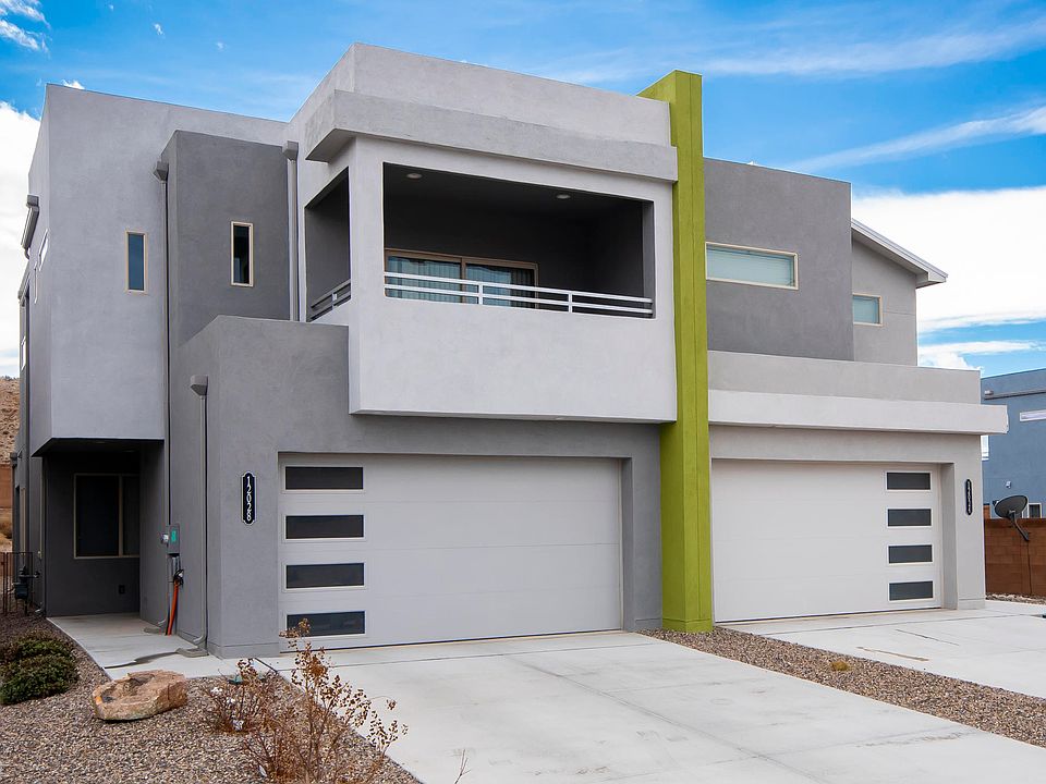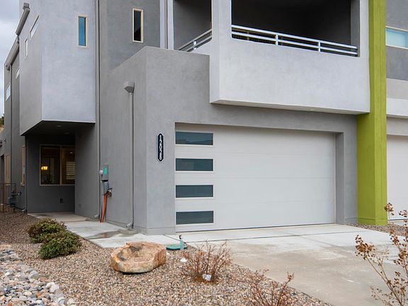 This home offers exactly what you would expect from a contemporary, luxury home. The home boasts a coveted NM Green Build Silver Rating which includes 2x6 construction, blown in insulation, tankless hot H2O system, refrigerated air, low E windows plus more! Entering through an 8' leaded glass door you'll find comfort in 9' ceilings leading to a gourmet kitchen delivering luxurious silestone counter tops, upgraded hickory cabinets with nickel hardware, decorated backsplash, an elegant 10' island with ample storage, walk in pantry and stainless appliances. Upstairs you'll find the Master bedroom that includes dual lavatories, walk in shower with shower seat, an enormous walk in closet, and its own private covered balcony where you'll enjoy amazing north facing views of the Sandia Mountains!