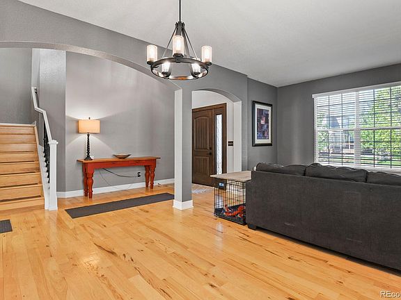 Location, location, location...perfect family home in a wonderful Parker neighborhood backing to the Black Bear golf course 6th fairway. This floor plan has plenty of space for all with a loft, office & finished walk out basement. Formal dining and living. Kitchen island with closet pantry. Walks out to deck. Open to family room with gas fireplace. Hardwood on stairs heading up. Upstairs has the master with double doors & barn door. Master bathroom has been remodeled. Great walk in closet space. Also a loft, 3 bedrooms & a full bathroom upstairs. Basement is nice and open. Great room with bar space, bathroom & 2 bedrooms. Storage room with storage under the stairs. Three car garage with shelving. Enjoy your peaceful back deck & patio. Fenced yard with chicken wire & a gate. Home has central air. Sump pump. Blinds. Accent walls. Basketball hoop.