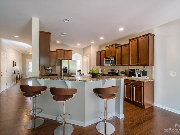 Must see newly painted home in Carolina Village! Brand new carpet. Stunning curb appeal with half stone front, rocking chair covered front porch and first floor in-law suite! Hardwoods throughout main level! Entry way with office/flex space to the left and archway open dining room with tons of natural light, crown molding and decorative wainscoting. Hallway into the great room with cozy gas logs fireplace and open floor plan. Eat-in kitchen with granite counter tops, center island, stainless steel appliances, breakfast area and tile back splash. Large, elegant owner's retreat with walk in closet/full system built in organization. Connecting en-suite with dual vanity, separate soaking tub and tile shower. Spacious secondary bedrooms/guest bathrooms!.! Some rooms are virtually staged. Home security cameras ,Ring bell, Movie theater, and gas grill in the patio for family and fun time.