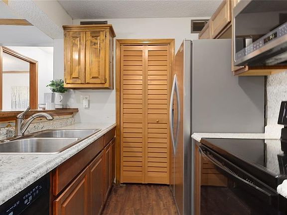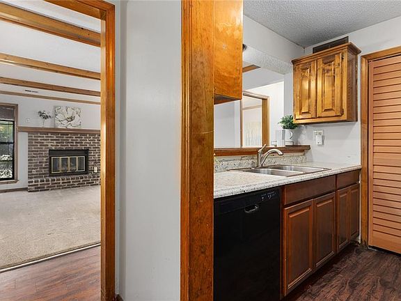 Looking for a condo with a great location? This location is minutes from I-35 and 435! You will enter to new luxury vinyl plank flooring and a kitchen with updated kitchen cabinets, newer stainless-steel microwave, refrigerator and stove/oven. Through the kitchen you will find a mechanical room with washer/dryer hook-ups (large enough for a stackable unit). The kitchen overlooks the family room with a beautiful brick fireplace, newer carpet, and wood ceiling beams. Two bedrooms and two full bathrooms offer plenty of room! This is a lovely ground level condo with a covered walk-out patio with fencing that gives plenty of privacy. Access to the patio is available from both bedrooms and the family room! The covered carport, plus a parking space, and a large basement storage unit steps from the condo are all added bonuses! Low monthly HOA dues cover exterior maintenance, roof, lawn care, snow removal, trash, water, community pool, and clubhouse!