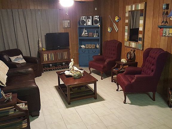 Only a block to SouthPoint Recreation area which has boat ramp, courtesy dock, large pavillion. This cottage style cabin has open living, dining and kitchen for casual lake living. There are two bedrooms and an enclosed back porch. Yard is completely fenced and has beautiful mature trees and blooming crape myrtles. There's a carport and garage to store your vehicles and boat. There are other buildings to use for storage or hobby. A Jim Giles tornado room gives peace of mind for family.