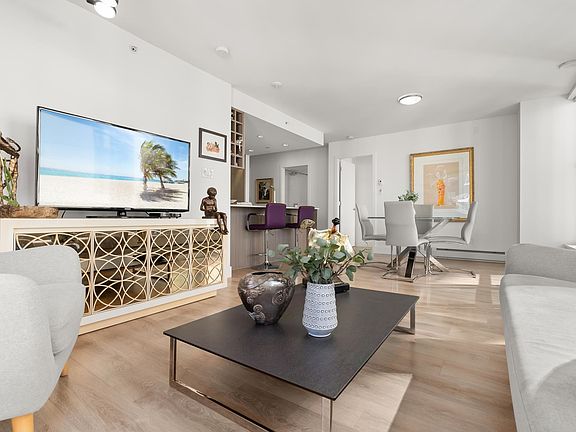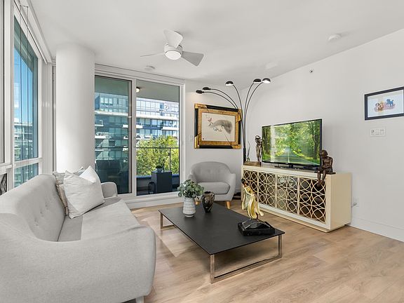 Experience the ultimate in urban living at Epic at West in Olympic Village. This unique 1 bed suite boasts floor-to-ceiling windows with mountain, water & city views and a spa-inspired bathroom featuring dual sinks. Spacious and bright, the home is complemented by a sizable pantry for extra storage and organization. Commuting is a breeze w/ a 5-min walk to the Canada Line & 10-minute walk to the Expo Line. Take advantage of fantastic retail options, dining, and sprawling seaside patio, and a 1-km seawall that connects to Vancouver's extensive 20-km pedestrian and bike route. Building amenities include concierge a rooftop deck with BBQ and a clubhouse for entertaining. Also included is a conveniently located parking spot, storage & bike lockers.