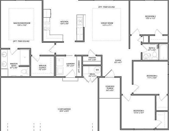 Let your inner interior designer come to life in the popular Bourbon plan. Enjoy the spacious comfort of the master bedroom, featuring an en suite bathroom and walk-in closet. Create your media room, home gym or home office with three additional bedrooms. The roomy kitchen offers a center presentation island and walk-in pantry. Entertain guests and get the most out of everyday life in your beautiful open concept living and dining spaces. Enjoy the stately tray ceilings and crisp finishing details that bring life to this new home plan. **Images are from a model home. Actual finishes and color selections may vary.