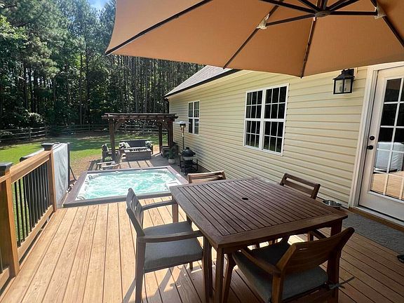 Welcome to your dream home, a move-in ready oasis settled in a quiet cul-de-sac. Situated on a beautifully landscaped 1.28 acre lot, this property offers a perfect blend of country living and modern convenience. You'll love the mature trees, rose garden, and lush greenery of the fenced-in backyard. The spacious deck, complete with a spa, is ideal for relaxing and entertaining. Step inside to discover a kitchen featuring recently upgraded marble countertops, a tile backsplash, and a stainless steel gas stove. The layout ensures a seamless flow between the kitchen, dining, and living areas, making it perfect for both everyday living and hosting guests. Outdoor enthusiasts will appreciate the custom-built chicken coop, perfect for sustainable living, and the boat pad in the driveway, providing easy access for adventures on nearby Falls Lake, just 15 minutes away. This home is not only a sanctuary but also strategically located just 35 minutes from the airport and Research Triangle Park, making commutes and travel easy. Experience the best of both worlds with serene country living and the convenience of nearby amenities. Don't miss the opportunity to make this private, beautifully landscaped property your new home!