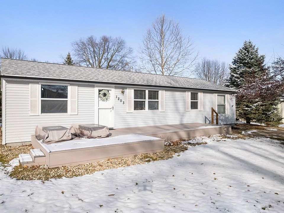 Amazing location & so much NEW. This beautifully kept home has been updated inside & out! 3 beds, 1 bath - 1200 sq feet on a very quiet street near the Grace College campus, shopping & restaurants. Inside feels open & airy as soon as you enter! Step inside a large family room that flows right into a second large living area just off the kitchen that can also be used as a formal dining! Aside from new flooring in the family rooms, a great paint color & an updated bathroom, this seller handled all the BIG updates so you don't have to! Roof, no maintenance deck & large shed all new in 2023 - furnace new in 2021 & AC new in 2022. Move right into this one & start unpacking, it's as turn key as it gets! Showings to begin on 2/27.