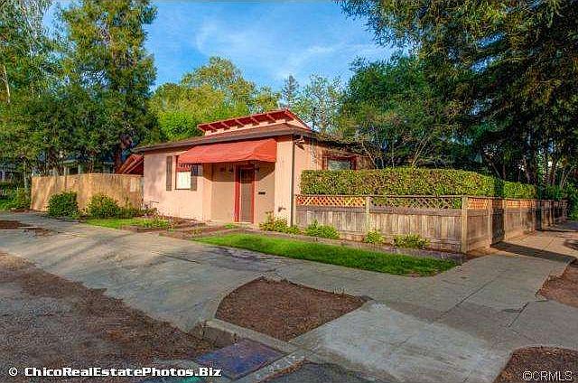#294 CHARMING AND SPECIAL are the best words to describe this home! Custom details galore! Beautiful stained glass window touches, soaring ceilings in the master bedroom with skylight windows make this a very special place to call home. Large soaking tub in master bath. This lovely three bedroom two bath has a custom kitchen with a newer gas stove, leades glass front cabinets, lots of storage cabinets and drawers to put all your stuff! Beautiful antique style wood stove in living room. Workspace area that is perfect for studying or convenient home office work area. French doors off living room lead to large yard, there are 3 decks/sitting areas for outdoor entertainment, fully fenced for privacy! Laundry area, garage, shed. Located near to downtown, close to Bidwell Park and the campus. Don't let this one slip away!