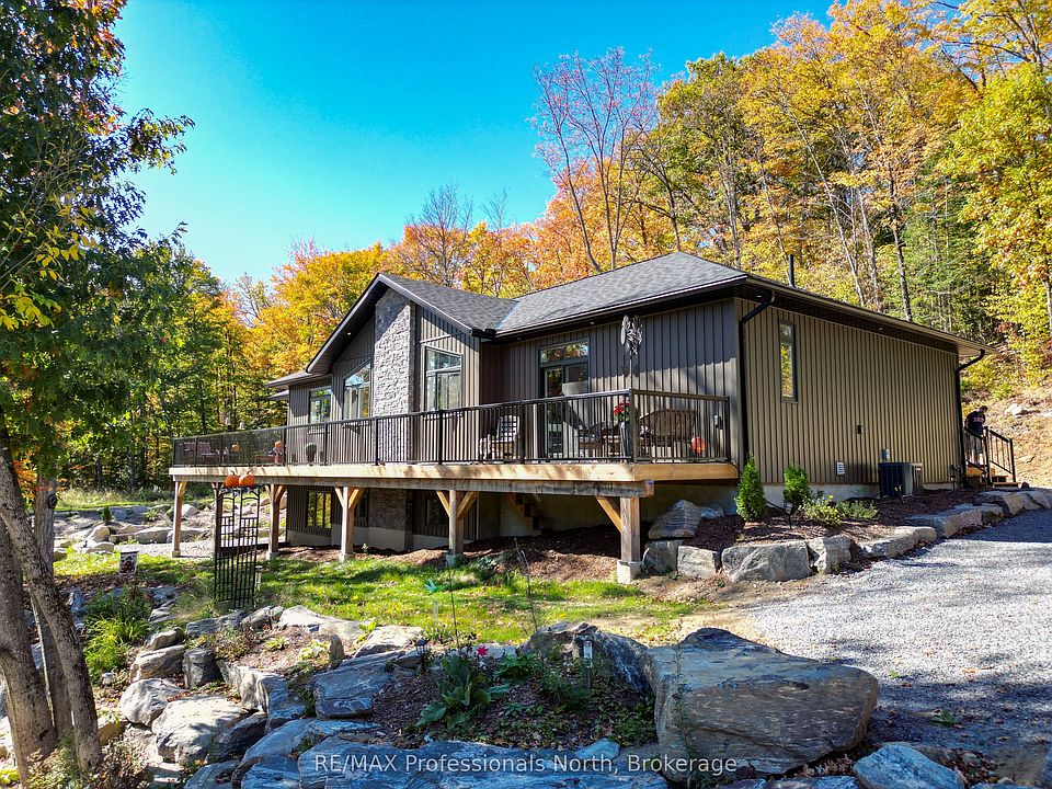 Welcome to 1203 Burlmarie Road! This large new custom built move-in ready home is conveniently located just outside of Baysville, close to Huntsville and the many amenities the area has to offer. The home sits on over 1 Acre and features nearly 2,000 sqft of finished main floor living space both open concept and private that includes 2 bedrooms and 2 bathrooms. The main floor boasts a massive kitchen with views of the backyard and open concept living and dining for interaction with guests. A large pantry with laundry combo and access to the backyard on the main floor just off the kitchen area adds function and convenience. The sun soaked south facing den ties into the wrap around front and back decks which provide plenty of space for enjoying a coffee in the morning or entertaining in the evening. The front yard features granite stone retaining walls and the side yard has a large grass area for activities. It is the perfect space to host guests coming to visit or campout on those summer evenings. The backyard is privately tucked away against the wooded backdrop. There is plenty of space for kids play sets, trampolines, outdoor storage, etc. The large driveway and flat area provides a great location for a future garage or storage building. The home is well built, boasting ICF walls from the lower level all the way up to the roof. Propane furnace, in floor heated floors throughout the lower level, central air, drilled well and a water filtration system. Imagine being minutes away from the Beaches, Parks and lakes that the area has to offer. Here, you'll have the convenience of amenities close by, and yet be surrounded by privacy & nature. All of this, and yet a gorgeous property, only 2+ hours to the GTA and minutes to town.