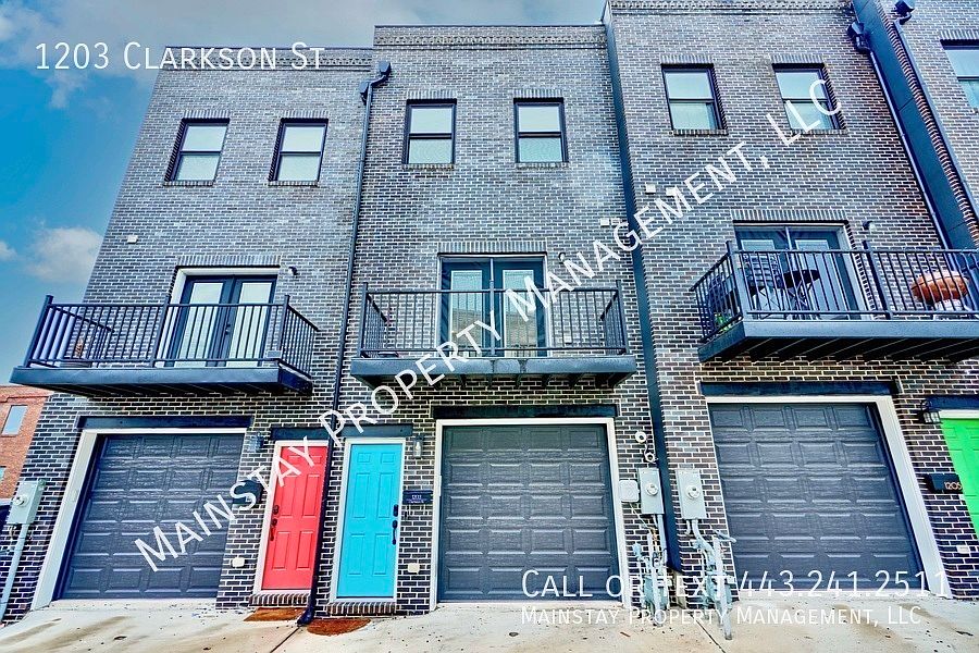 Available 12/15! Welcome to 1203 Clarkson St, a 3 bedroom, 3 bathroom new construction rowhome located in Baltimore's Federal Hill neighborhood. This home has it all, including multiple balconies/rooftop decks and a garage, plus an additional reserved parking spot. The first level includes the garage, one luxury full bath, and a bedroom. The main level offers a spacious living room and beautiful kitchen complete with a full suite of SS appliances, a center island with breakfast bar, and french doors leading to balcony. Two additional bedrooms are situated upstairs with two full baths, both complete with dual vanities and modern finishes. Finally, the fourth level offers access to the rooftop balconies and gorgeous views of the city. Pets negotiable with $300 pet deposit and $45 per month in pet rent. Schedule your showing today!
