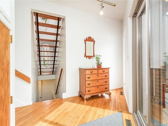 A turn into the private lane starts the feeling of peaceful relaxation. The enclave of unique, contemporary, homes is nestled in a lightly wooded area which abuts 14 acres of land trust property. Turning the corner and entering the sun filled clearing that is the house site you know this is a special place. The light filled contemporary home, with lots of glass, balconies and decks has an open floor plan that is warm and great for entertaining. The great kitchen with tons of storage looks into the great room and has easy access to one of the many decks. There is a first-floor study/ bedroom (think 1st floor master!) The second floor has three more bedrooms and two more baths. And, through every window is natures beauty. The convenience of the garage with room for two cars and lots of tools/toys is not to be missed. It is comforting to know that this location is convenient to shopping, schools, and commuting both north and south. Madison village center and renowned Madison beaches are only about 8 minutes away. And, when it is time to come home all the peace and tranquility of this special place will be waiting for you.