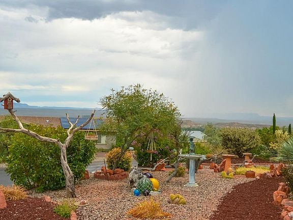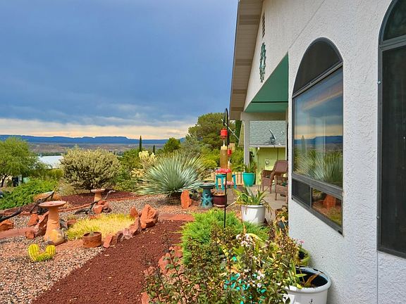 This is the home that makes all the neighbors envious! This recently updated home sits on a corner at the top of the drive with Amazing views encompassing Mingus Mountain all the way to the Red Rocks of Sedona and beyond! Take stepping stones through beautiful landscaping to the front porch and be welcomed inside. Cozy family room has wood floors and a bay window to capture the views. Large kitchen has breakfast bar and skylights. This home is all one level with no steps and wide doorways and halls for handicap accessibility. Master bedroom has wood floors and tons of space with walk in closet with built-ins. 2 guest bedrooms have mirrored wardrobes and ceiling fans. Close to schools, shopping and quick access to the Freeway make for a perfect location.