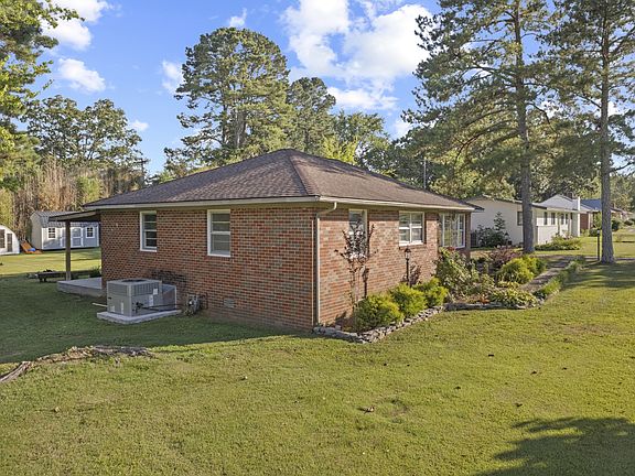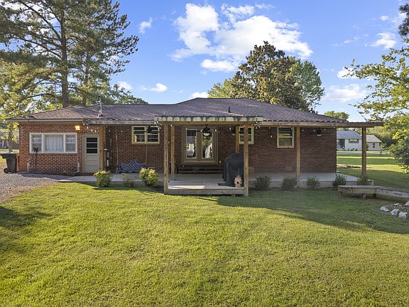 Lovely, well maintained, all brick ranch, with lots of extras. HVAC unit new 5/22. Amazing 42x12 covered concrete patio plus covered grilling deck, extra large storage building, carport & shop wired, green house, plus child's playhouse & great landscaping. LR with electric fireplace & closet for storage, Lg Kit w/SS appliances including refrigerator & pantry closet, Den w/built-in shelving, baths updated, neutral paint, no carpet, water heater new 2/22.