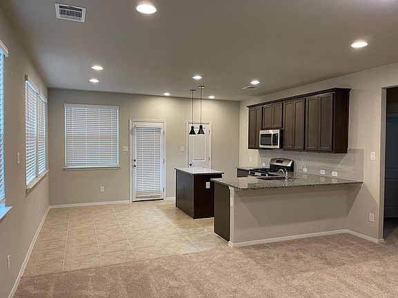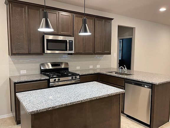 Check out this beautiful brand new home in Kyle Texas! Immediate Move-In! 3 bedroom, 2 bathroom single story house in big corner lot. No houses cross the road. Open Floor Plan ~ Stunning Kitchen w/ Granite Countertops & Island ~ Beautiful Master Bath w/ Dual Vanity ~ Private Backyard w/ Covered Patio ~ 2 Car Garage w/Opener Once you are in the kitchen you'll fall in love with the ample dark cabinetry, granite countertops and modern backsplash. All three bedrooms include carpet and spacious closets with the family bedroom featuring an ensuite bathroom. Under 10 minutes driving to HEB, Target, Hospital and Restaurants. Walking distance to schools. Close access to I-35. Schedule your appointment today to view this home! No Utilities included in rent. Renters maintain the Lawn.
