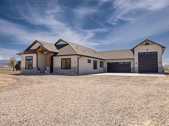 Thoughtfully designed and built by Alta Home Builders. Another floor plan and 1-acre lot are available to be built for similar price/finishes in the subdivision. Great for multi-generational living, the split floor plan boasts a luxurious primary suite and a beautiful junior en suite, each complete with walk-in closets and stepless showers. Comfortable outdoor living space flows seamlessly into the open concept living room. Covered patio offers gas and electricity for an outdoor firepit or kitchen, primary bedroom is ready for a hot tub. A gorgeous gas fireplace with hand-crafted, rustic shelving and hidden audiovisual storage command attention at the heart of the home. Classy quartzite countertops add elegance to a practical kitchen with views of the Bookcliffs. A well-appointed butler’s pantry, complete with a prep sink, beverage cooler, cabinetry and wine storage keeps small appliances tucked away in a tidy workspace. Designed to flex along with the needs of a family all on one level, the primary suite offers a spa feel with a gorgeous, tiled shower designed for aging in place in style or spoiling yourself every day. The middle bathroom includes an oversized soaking tub finished in a glamourous polished tile, serving two additional, spacious bedrooms or hobby rooms. Finally, the heated, attached 1,500 sf garage with a tall RV garage bay provides storage for trailers, campers and toys, or a wonderful workshop, helping homeowners avoid the additional cost of building a shop on the property. Come see if this is your dream home!