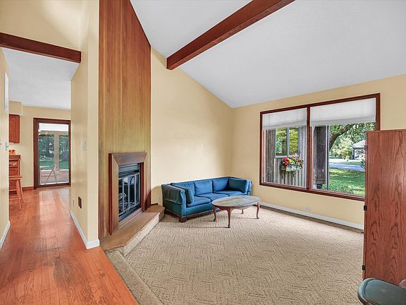 Nestled on nearly half an acre in a desirable Mahomet subdivision situated on a cul-de-sac near Lake of the Woods. This 3 bedroom, 2 bathroom ranch home combines character and updates. The front living room showcases vaulted ceilings with beams and a statement fireplace. Hardwood flooring flows through the updated kitchen, dining area, and the spacious sunroom. The spacious kitchen offers plenty of cabinetry, including an island with barstool seating. The primary suite offers a private full bathroom, complemented by two additional guest bedrooms. Enjoy the outdoors from the screened-in porch or the deck overlooking the backyard. An attached two-car garage has an additional storage space connected. With its inviting layout and prime location, this home is ready to welcome its next owners.