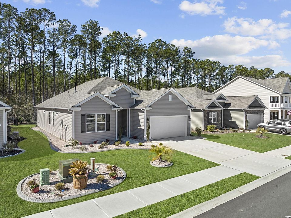 Looking for a move in ready home with all the bells and whistles? Look no further, this popular Eaton floor plan is better than new! Beautiful 3 bedroom 2 bath home offers wide open floor plan, with 9' ceilings all on one level. Built in 2020, Luxury Vinyl Plank flooring throughout the foyer, living room, master bedroom and 2 guest bedrooms! Kitchen offers an oversized counter height island, granite counter tops w/under-mount sink, stainless appliances including gas cook top. The beautiful electric, linear fireplace is accented with a floor to ceiling shiplap wall. Master bedroom has tray ceiling, walk in closet and custom tiled shower with upgraded glass door. This fantastic home is situated on a wooded lot with irrigation, additional landscaping and Curbscapes outlining all the beds. A few other extras include: upgraded exterior & interior lighting, pull down ladder for extra attic storage, gutters on the entire house, outlet in living room floor, tile back splash in the kitchen. All window treatments, appliances, including washer & dryer and even the outdoor grill convey! You could not rebuild this house with all these extras at this price! Heather Glen is a natural gas community and this home comes equipped with gas cooktop, gas tankless hot water heater, gas heat pump, and gas line for outdoor grill. Heather Glen is an amazing community with a beautiful community pool, exercise room and is located close to everything North Myrtle Beach has to offer and easy access to Hwy 31. Don't delay, call for your personal viewing today!!
