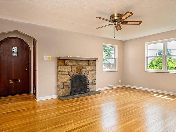 You can move right into this beautifully crafted cape cod home in the English Cotswold style with slate roof. This home offers a wonderful balance of modern comfort and timeless charm. Entry w/two closets leads to tastefully updated interior. Newly refinished hardwood floors & freshly painted interior. Renovated Kitchen w/ newer LG gas range, LG French door refrigerator, and Midea dishwasher. Beautiful chandelier in the Dining Room and bright Living Room with cut stone decorative fireplace and arched doorways. Convenient first-floor Bedroom with remodeled Bath w/step-in shower. Updated HVAC, newer water heater, new garage door w/ updated opener. Leaf filter gutter protectors. Enjoy morning coffee on the covered porch with patio. Large basement. New LG washer & dryer. Easy commute to Downtown, Oakland, Lawrenceville. Close to Kiwanis Park w/pool ,tennis, pickle ball, HSA Warranty included w/7-Star upgrade.