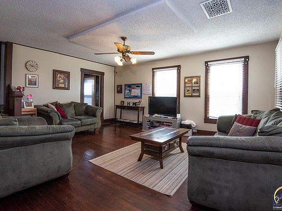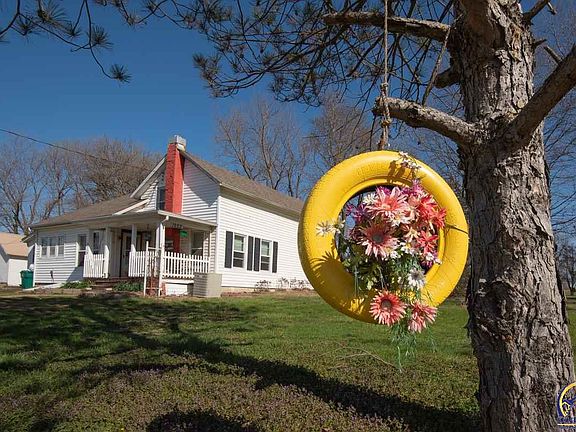 Farmhouse living at it's most convenient! White 1.5 story home with the required outbuildings, situated on 3.8 acres, right outside of town, on pavement. Charming home with spacious rooms, hardwood floors, and opportunity to put your own touches. Spend time outside exploring the outbuildings, and enjoying the outdoor space. Home and grounds are situated to where the sunrise can be enjoyed from the front porch, and marvel at the majesty of a Kansas sunset from your back yard.