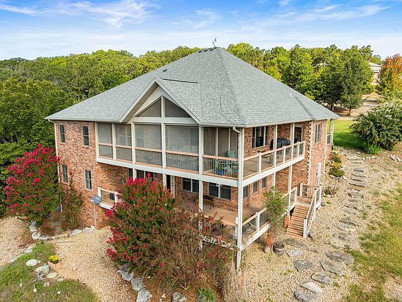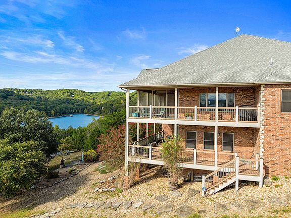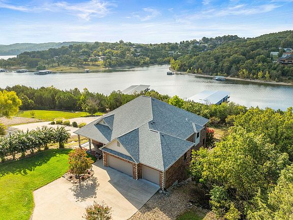The perfect lake home does exist! We call this a unicorn because it is LAKEFRONT and LAKEVIEW and WALK TO SLIP! This lovingly custom built, one owner home is ready for your family to make memories that will last a lifetime. Located down the highly sought after UU Highway in Blue Eye, you are close to everything Branson and Big Cedar have to offer yet are tucked back in a quiet cove. Your view (which can be seen from living room, dining area, kitchen, master bedroom, decks and even downstairs) faces East so you can enjoy the sunrise with morning coffee and not bake in the sun for supper in the evening. By night enjoy seeing the occasional fireworks from BIG CEDAR from the comfort of the fully screened in back deck (even beneath the composite decking is a screen so no bugs!) and by day watch the Branson Bell mosey by. Walk down the very well manicured path to your 10x28 slip (extra $) and take the pontoon out (available for extra $) or just chill on the dock which features a porch swing and a step down lounge where you can just put your feet in. The interior is just as impressive with hand scraped thick hardwood floors, tall ceilings, spacious bedrooms, second living area and ample storage space. Both bedrooms on the main level have en suite bathrooms and there is also an office (or third bedroom) and large laundry room on the first floor. The layout, finishes and landscaping have all been well thought out and enhance the phenomenal proximity to the lake. Must see, it won't last!