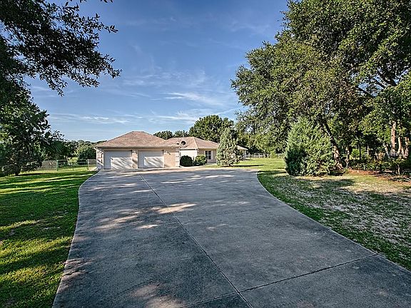 Welcome to your own private retreat located on the serene, spring-fed Crystal Lake in Fruitland Park. This 2 acre property is just minutes from The Villages with all of its conveniences of shopping, restaurants and entertainment. The completely FENCED yard possesses mature oaks for shaded gardens as well as 2 sheds for storage or a workshop. Fruit trees and fruit bushes are just some extras you will find located in the gardens. This 2,704 square foot, 3 bedroom, 2 full bath and 1 half bath home features ceramic tile and laminate flooring throughout. The spacious kitchen prominently displays an abundant amount of wood cabinets and tile countertops. The master bedroom suite highlights its own living space, featuring a brick surround, GAS FIREPLACE and French doors leading out to the Lanai. This suite could be used as an in-law residence or as private guest quarters. The 2 large guest bedrooms share a Jack-n-Jill bathroom with each room having its own private sink and commode. The airy Lanai boasts a 5 person Hot Tub as well tranquil, scenic views of the lake and property. If a home that has lots of possibilities, that is perfect for entertaining and guests, relaxation, amazing views and privacy is what you have been looking for...then welcome to your Florida Dream Home!