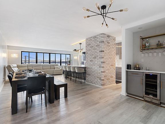 Discover unmatched comfort and captivating views in this sun-drenched, stylish 2-bedroom, 2-bathroom apartment at Hudson Harbour Condominiums, a prestigious 24-hour gated riverfront community that welcomes pets. With breathtaking panoramic views of the George Washington Bridge, Hudson River, and NYC skyline from every room, this residence offers: Expansive wraparound terrace ideal for entertaining or relaxing. Modern open-concept kitchen with brand-new Samsung smart appliances, wet bar, and wine fridge. Luxurious bathrooms, including a primary suite featuring a spa-inspired wet room, jetted tub, and rainfall shower. The second bedroom combines practicality and elegance with custom wall-to-wall cabinetry and a sleek Murphy bed that seamlessly transforms into a desk or shelf when closed. The Murphy bed is included, but the owner is open to removing it upon request. All utilities and amenities are included: heat, A/C, gas, water, electricity, high-speed internet, cable with premium channels, pool, tennis court, and gym. Direct NJ Transit bus service to Manhattan is available from the building. Broker fee applies. Included heat, A/C, gas, water, electricity, high-speed internet, cable with premium channels and parking