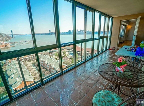 !!!WATCH THE VIRTUAL TOUR!!! Sunny and spacious living room opens to dining room with wall to wall windows overlooking amazing views of Hudson River and GW Bridge. You will not want to leave your 40 sf wrap around enclosed terrace with these breathtaking views. Terrace will be getting a face lift with brand new railings. Updated galley kitchen with stainless steel appliances. Hardwood floors through this spacious 2 bedroom, 2 bath condo with 2 parking spaces. Large master bedroom with en-suite master bathroom. Brand new heating and cooling units throughout. Large 2nd bedroom with new windows. Enjoy the convenience of a 24 hr doorman located near NYC transit, Edgewater ferry, shopping and amazing restaurants. Monthly maintenance includes all utilities cable, pool, children's playground & tennis. Property is also available FOR RENT for $2,975/month.